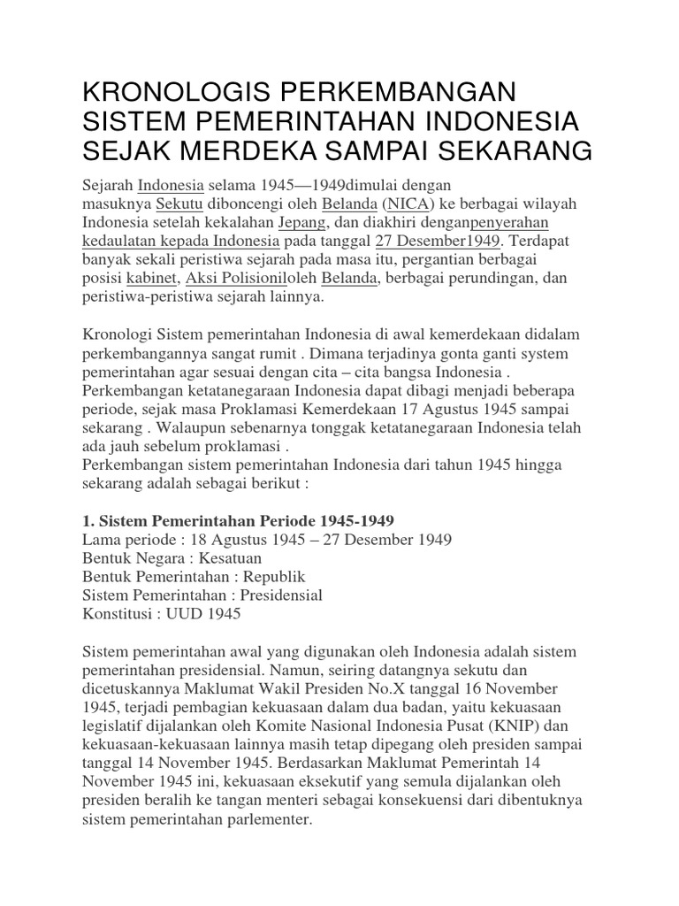 Kronologis Perkembangan Sistem Pemerintahan Indonesia Sejak Merdeka