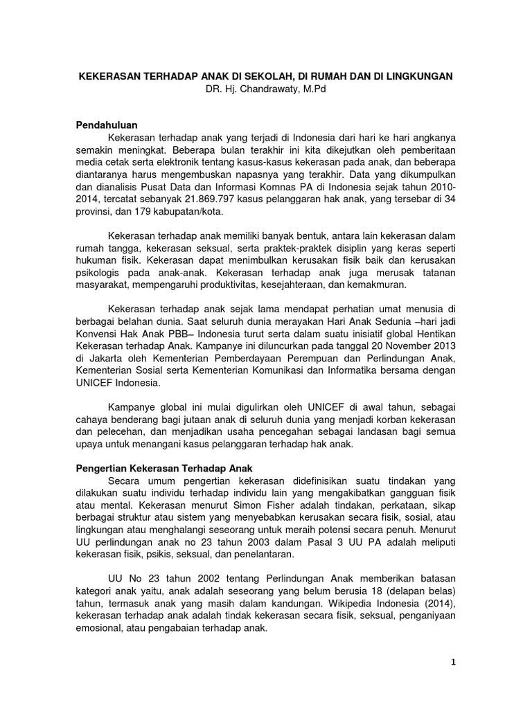 Kekerasan Terhadap Anak Di Sekolah Rumah Dan Lingkungan