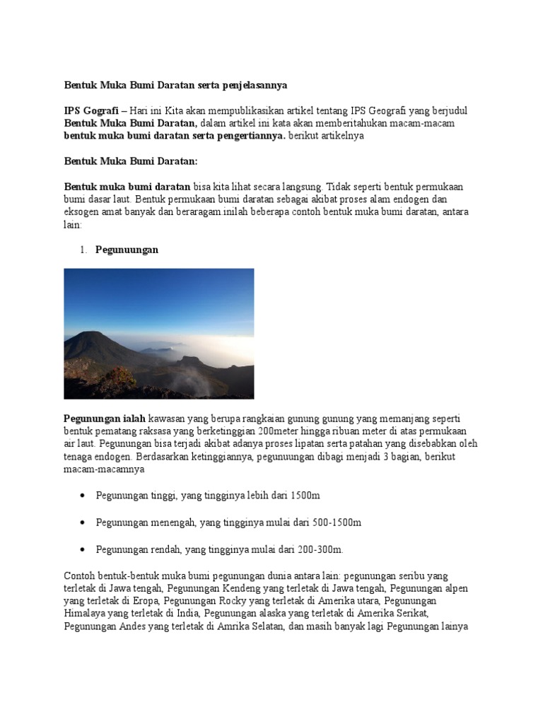 Bentuk Bentuk Muka Bumi Daratan Beserta Penjelasan Gerbangilmu