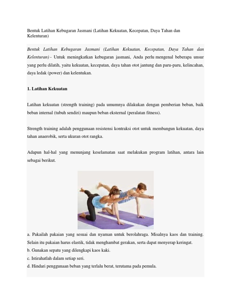 Bentuk Latihan Kebugaran Jasmani Cara Melakukan Manfaat