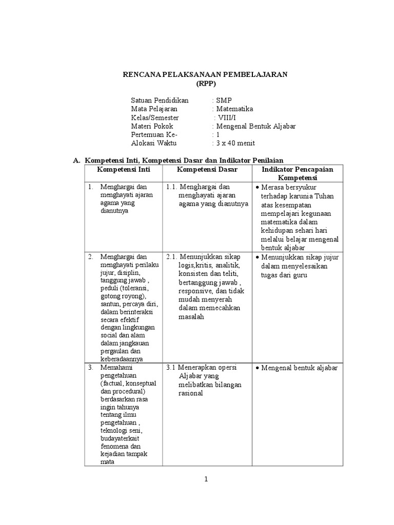02 Rpp 21 Mengenal Bentuk Aljabar