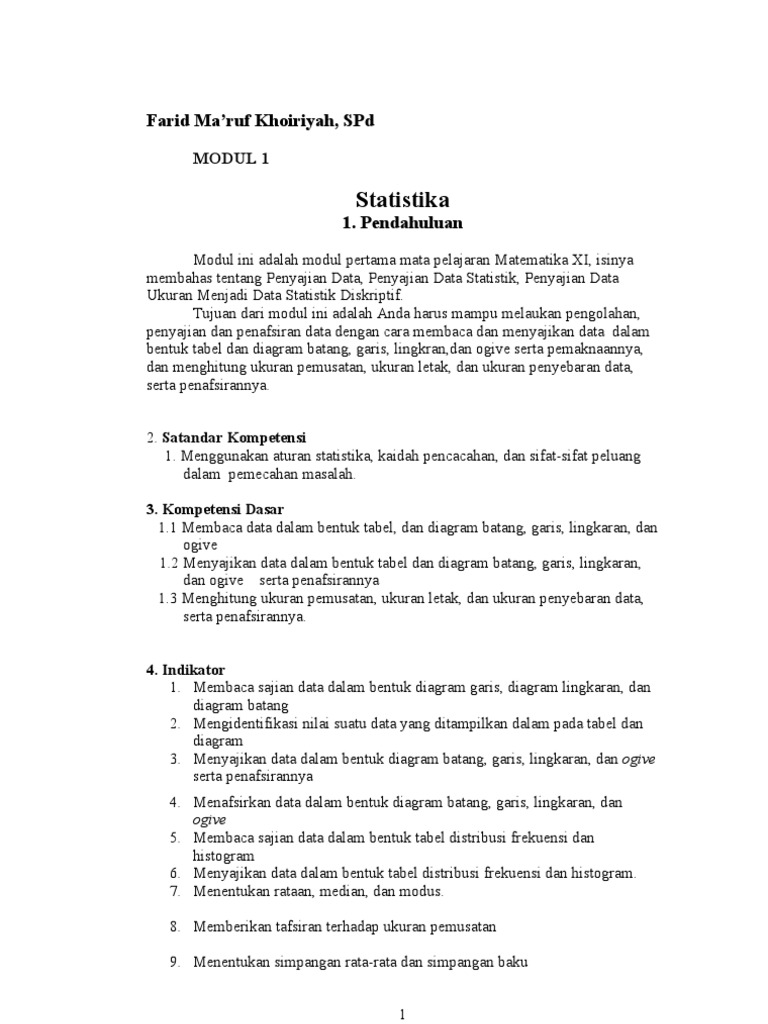 Kegiatan Belajar 3 Penyajian Data Dalam Bentuk Diagram Pdf