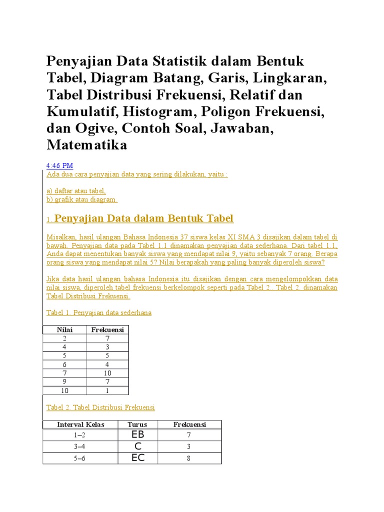 Contoh Soal Dan Pembahasan Tentang Statistika Smp Ajar Hitung