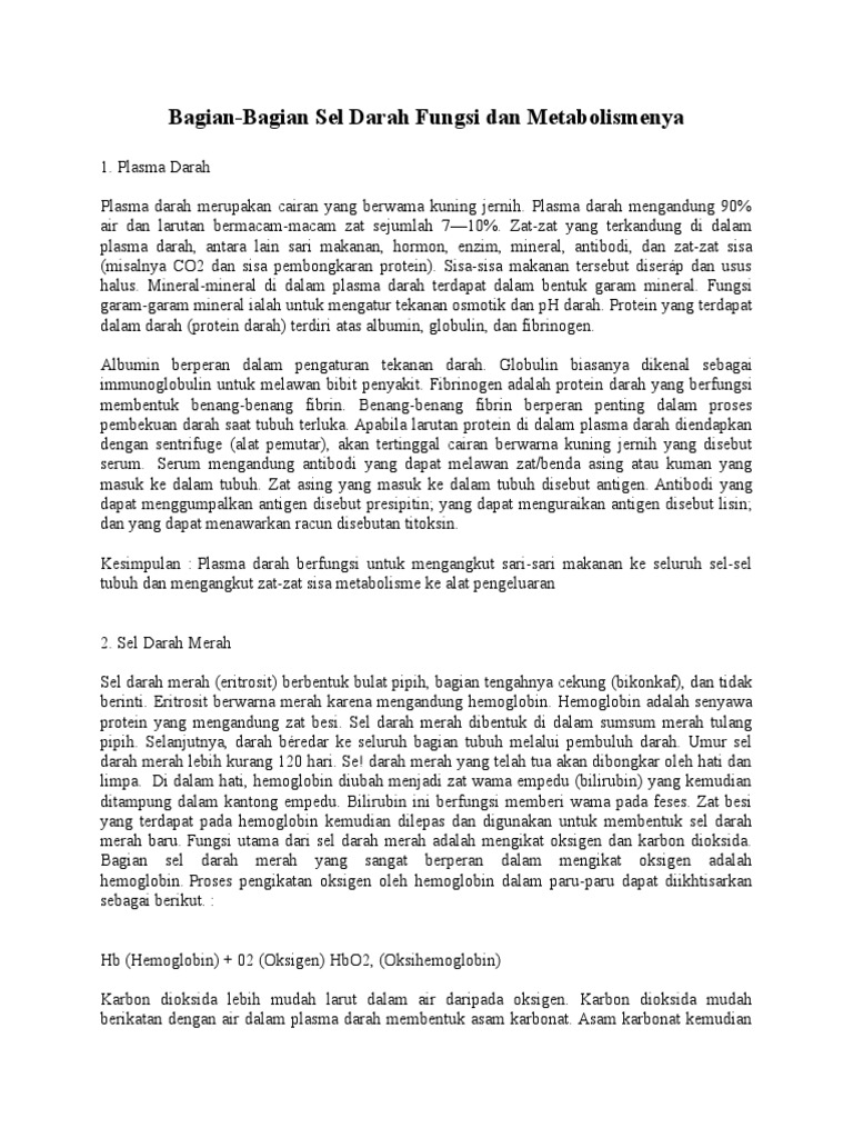 Bagian Darah Berfungsi Mengangkut Gas Pernapasan Terutama Oksigen