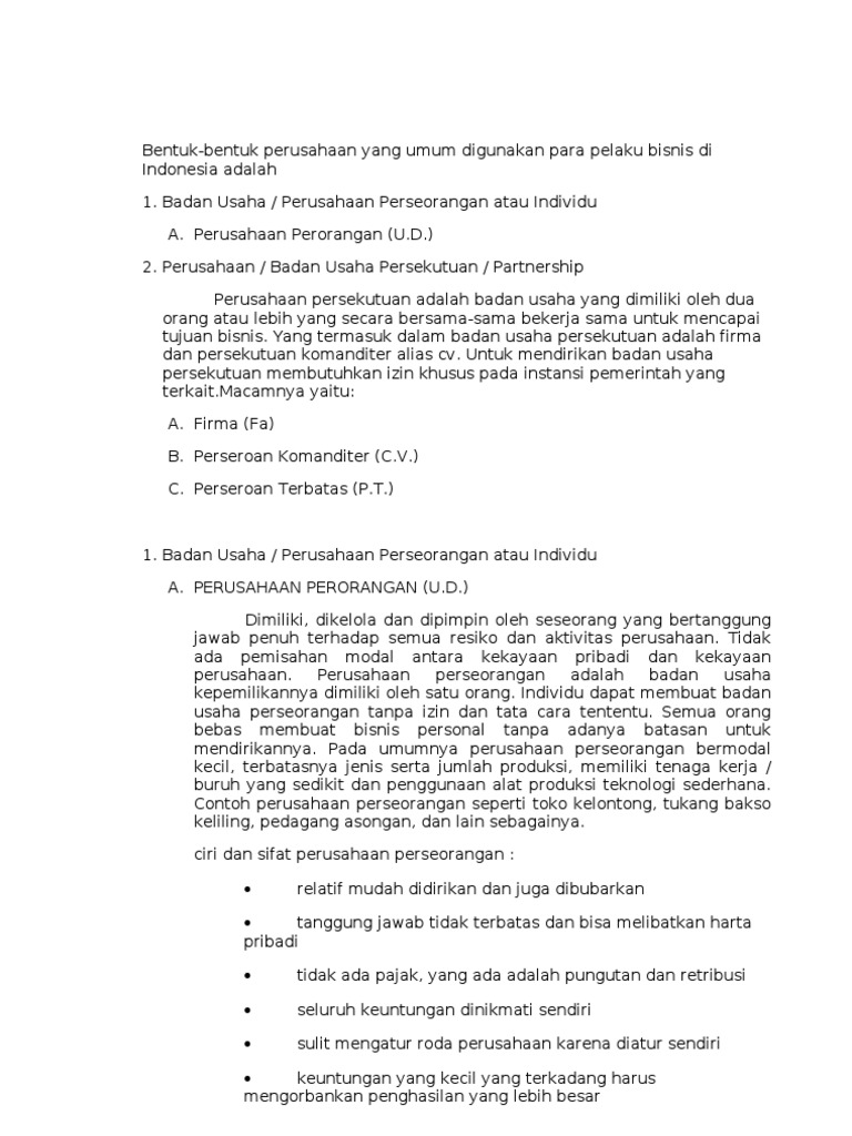 Bentuk Bentuk Perusahaan Di Indonesiadocx Tugas 2 Bentuk Bentuk