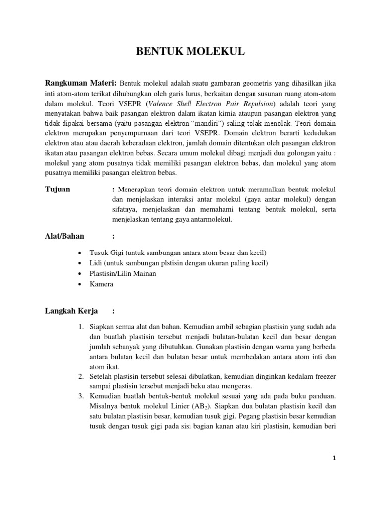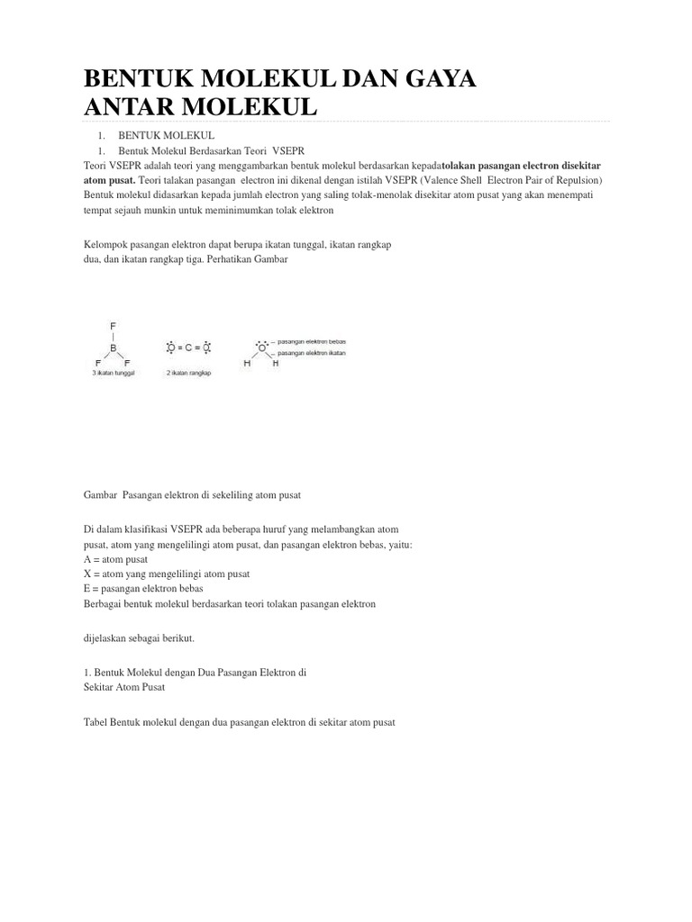 Bentuk Molekul Dan Gaya Antar Molekul Kimia