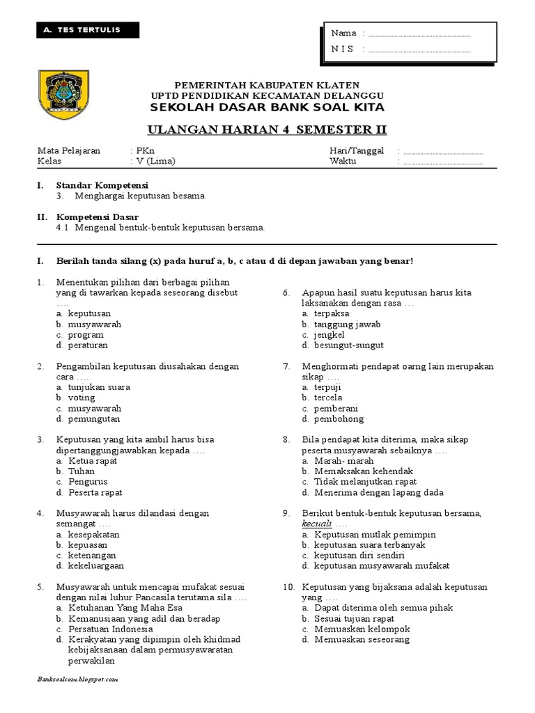 Rpp K13 Dan Ktsp Rpp Ktsp Pkn Kelas 5 Semester 2 Keputusan Bersama