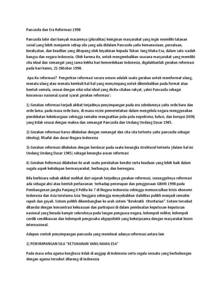 Sejarah Pancasila Masa Orde Baru Dan Reformasi