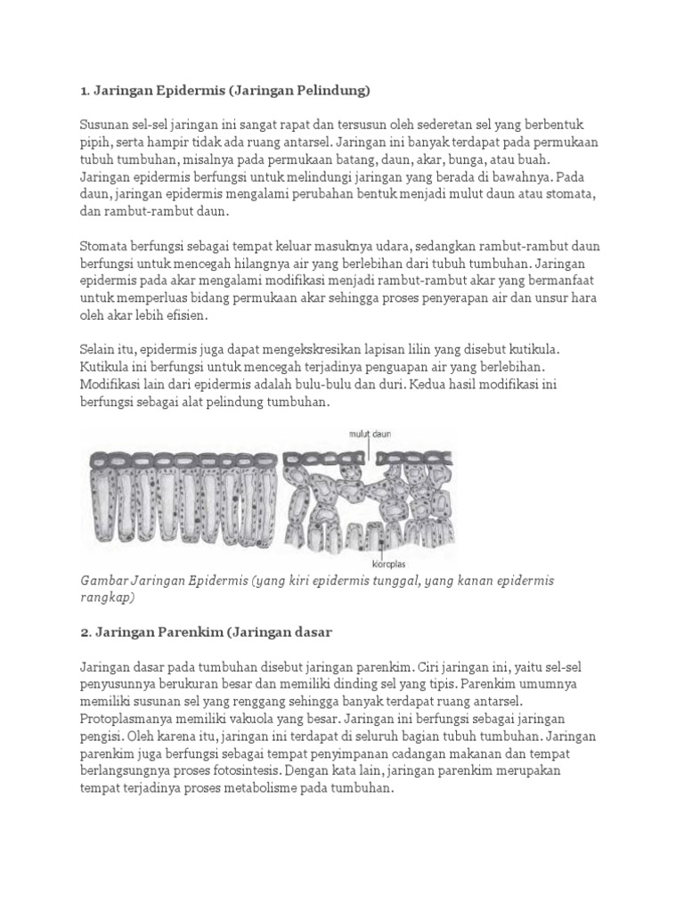 Jaringan Epidermis Dan Jaringan Parenkim Pada Tumbuhan Biologi