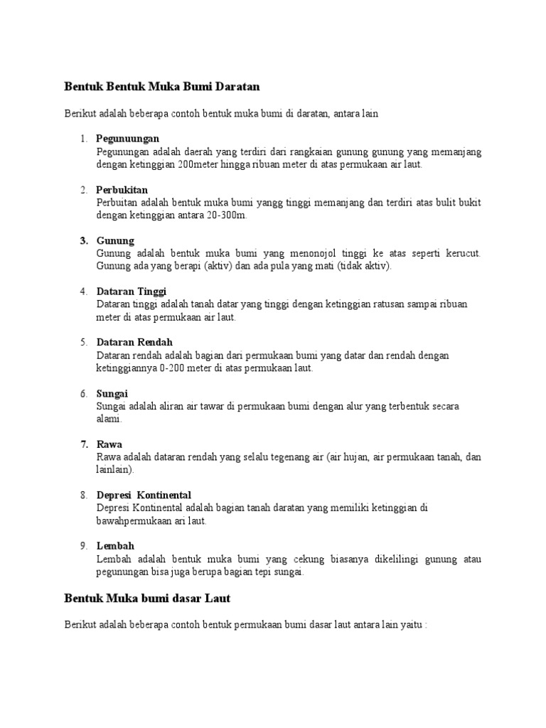 Peta Tentang Pola Dan Bentuk Muka Bumi Pdf Document