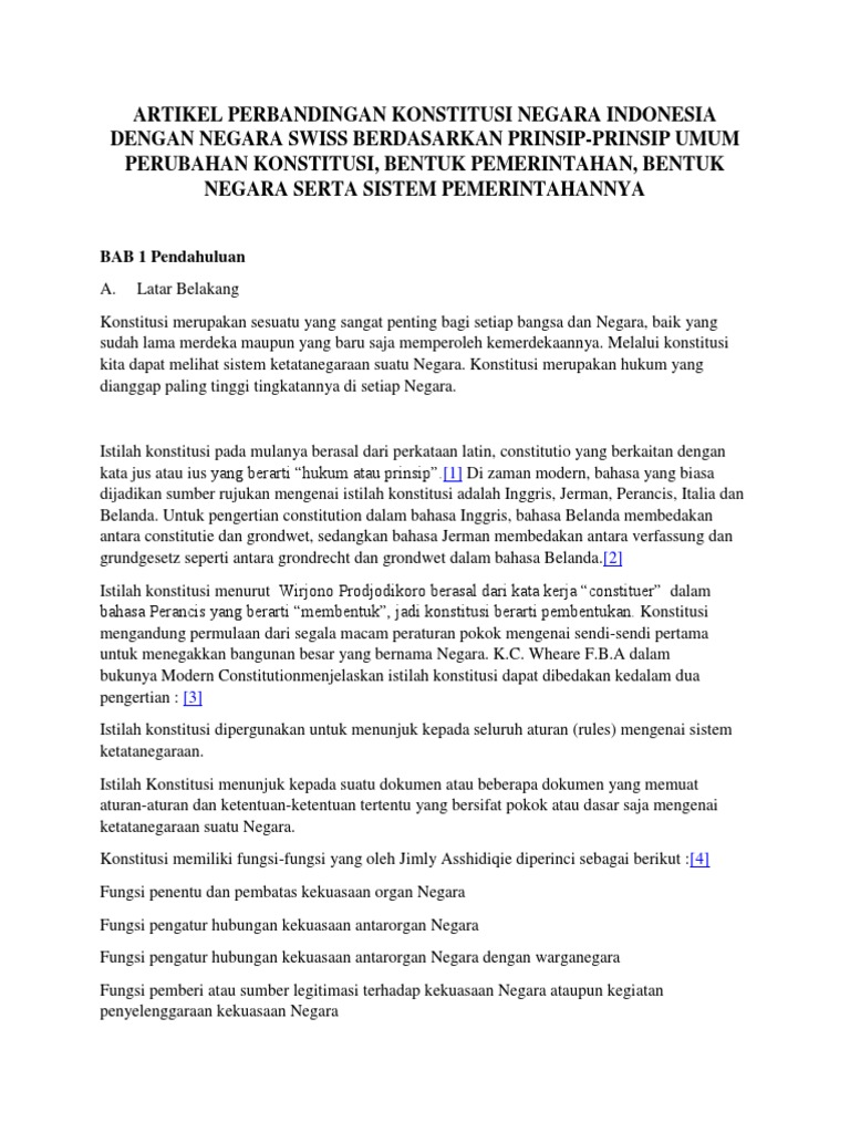 Artikel Perbandingan Konstitusi Negara Indonesia Dengan Negara Swiss