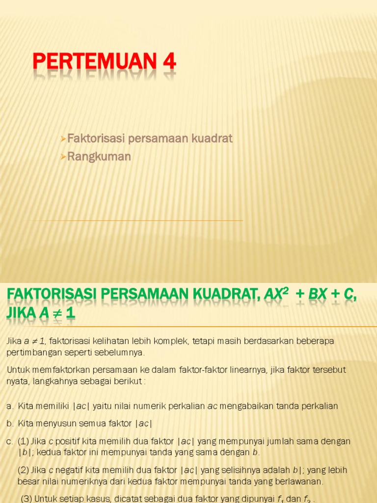 1 7 Faktorisasi Persamaan Kuadrat Ax2 Bx C Dengan A 1 Ppt