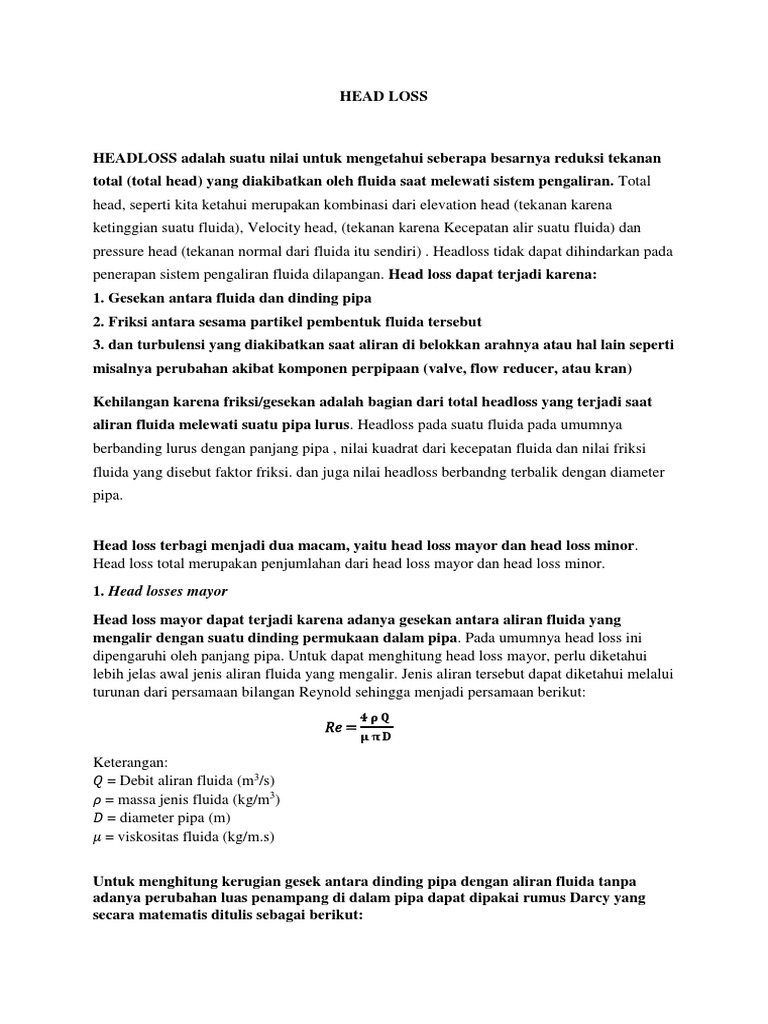 Analisa Pengaruh Variasi Sudut Sambungan Belokan Terhadap Head