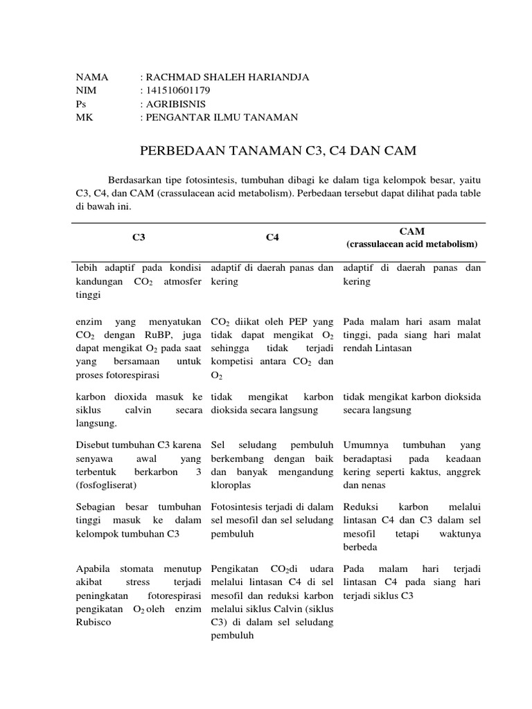 Perbedaan Tumbuhan C3 C4 Dan Cam Pdf