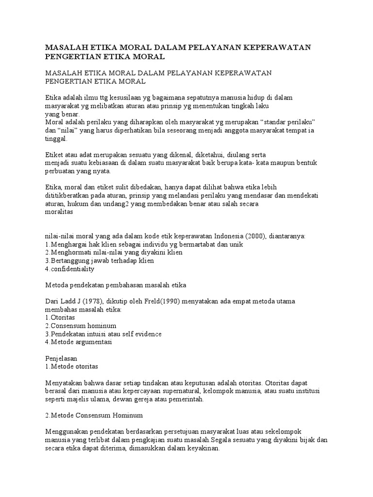 Masalah Etika Moral Dalam Pelayanan Keperawatan Pengertian Etika