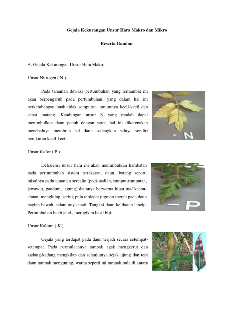 Gejala Kekurangan Unsur Hara Makro Dan Mikro