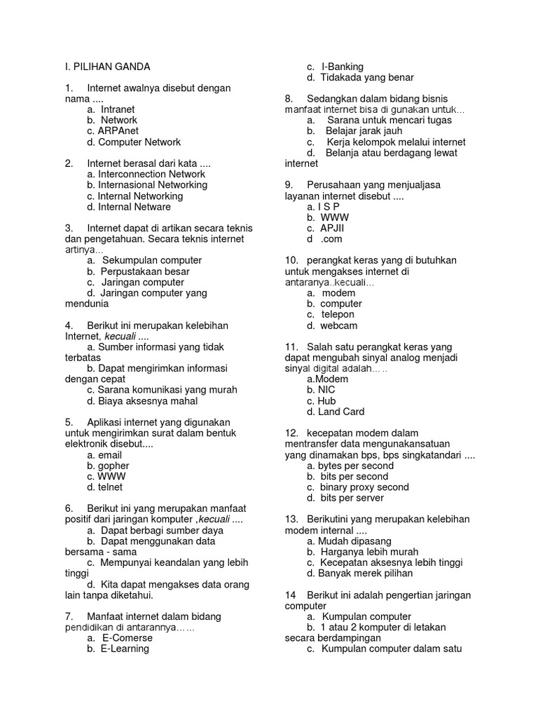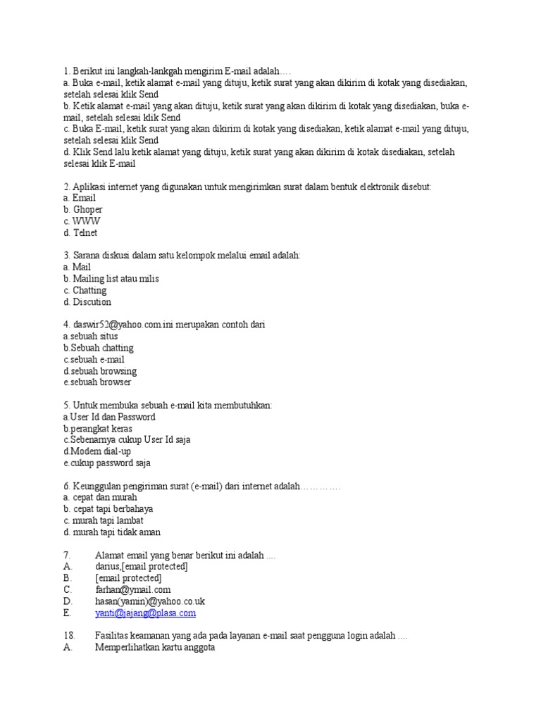 Bank Soal Tik Pilihlah Salah Satu Jawaban Yang Paling Benar 1
