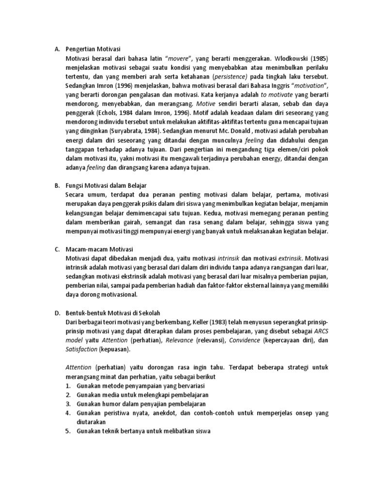Motivasi Dalam Belajar Dan Pembelajaran Makalah Bdp