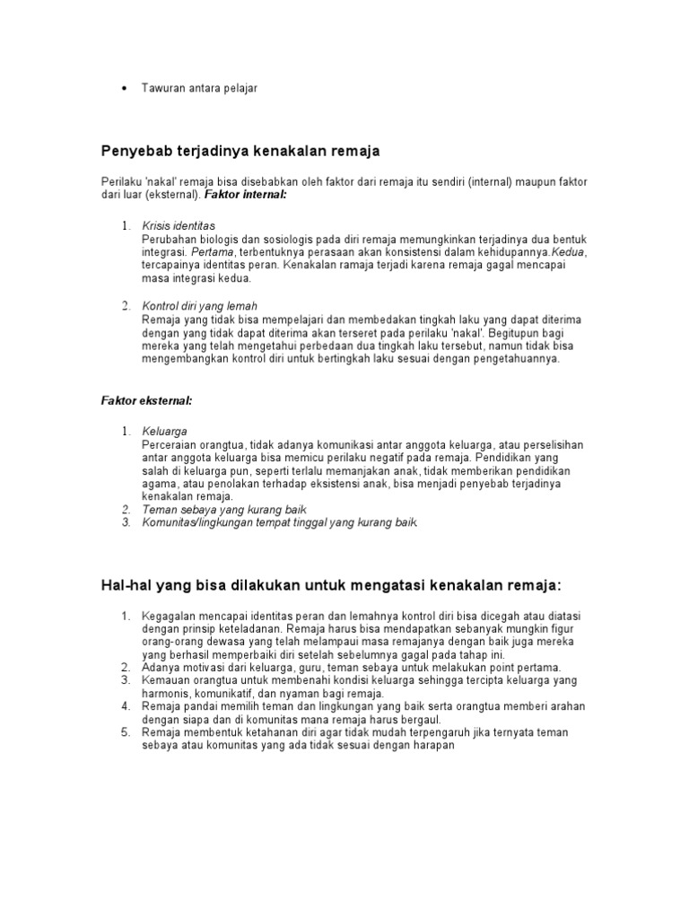 Fenomena Perkelahian Kelompok Siswa Remaja Studi Kasus Pada Sekolah