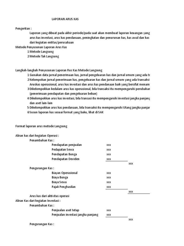 Contoh Laporan Arus Kas Metode Langasung Dan Tidak Langsung