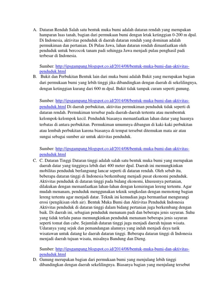 Latihan Soal Ips 122 Bentuk Muka Bumi Dan Aktivitas Penduduk