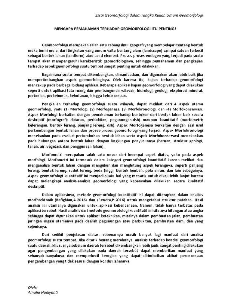 Essai Geomorfologimengapa Pemahaman Terhadap Geomorfologi Itu Penting
