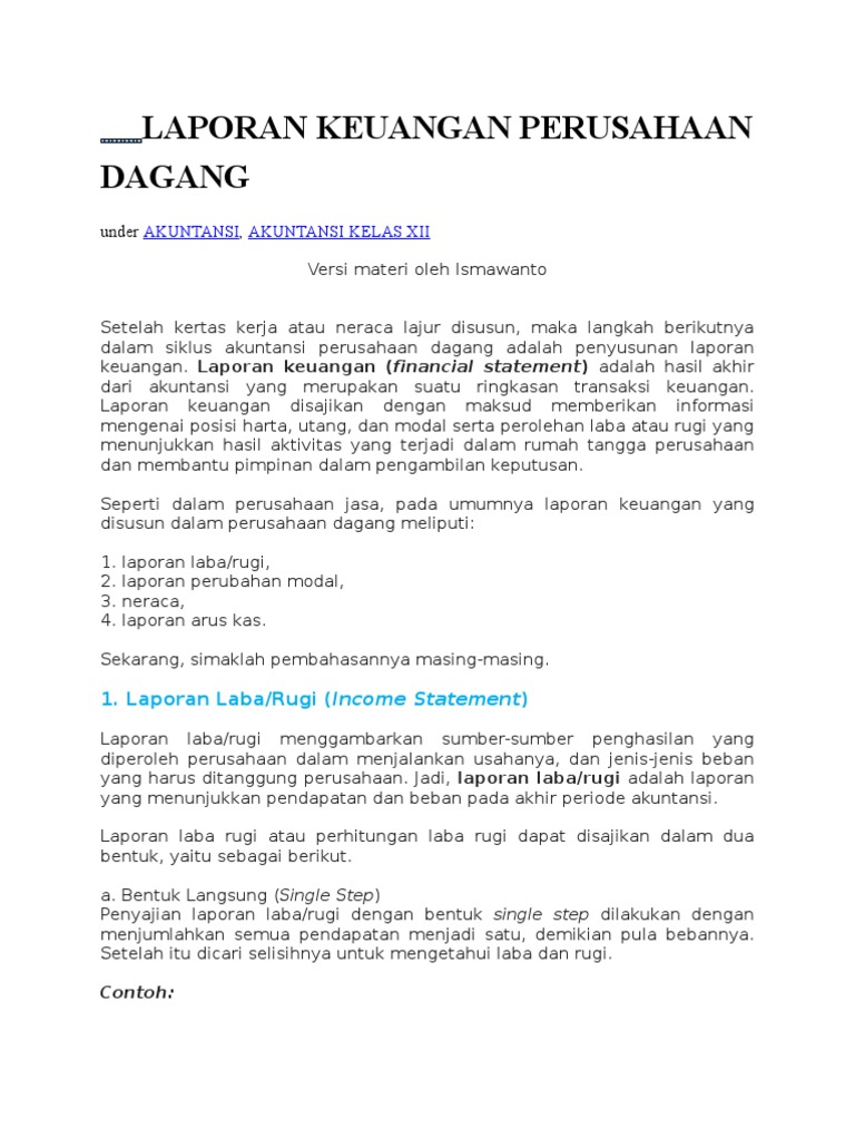 Koleksi admin mengenai Contoh Bentuk Laporan Keuangan Perusahaan Dagang.