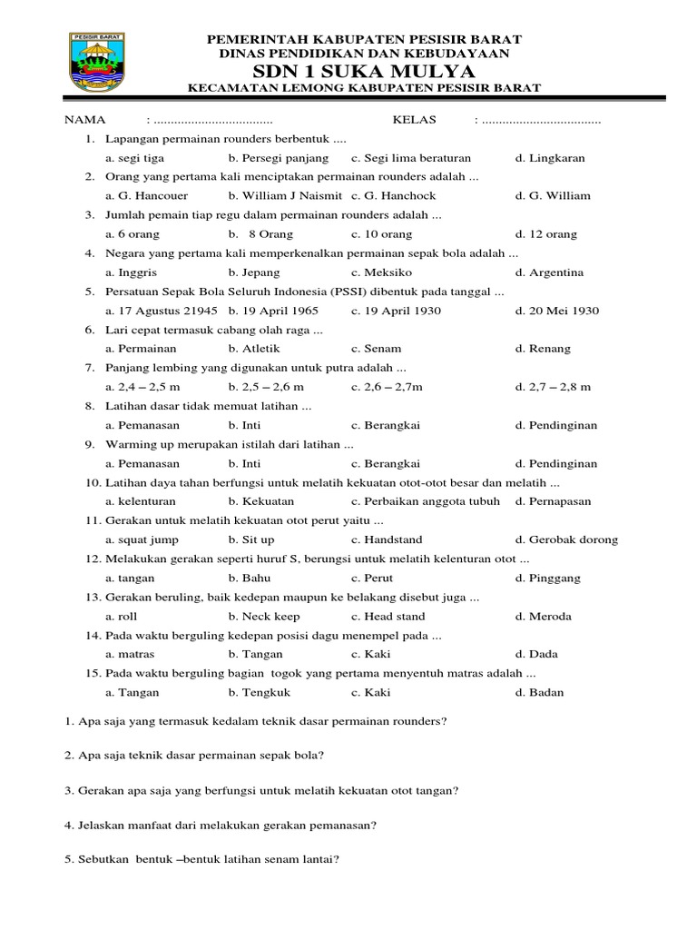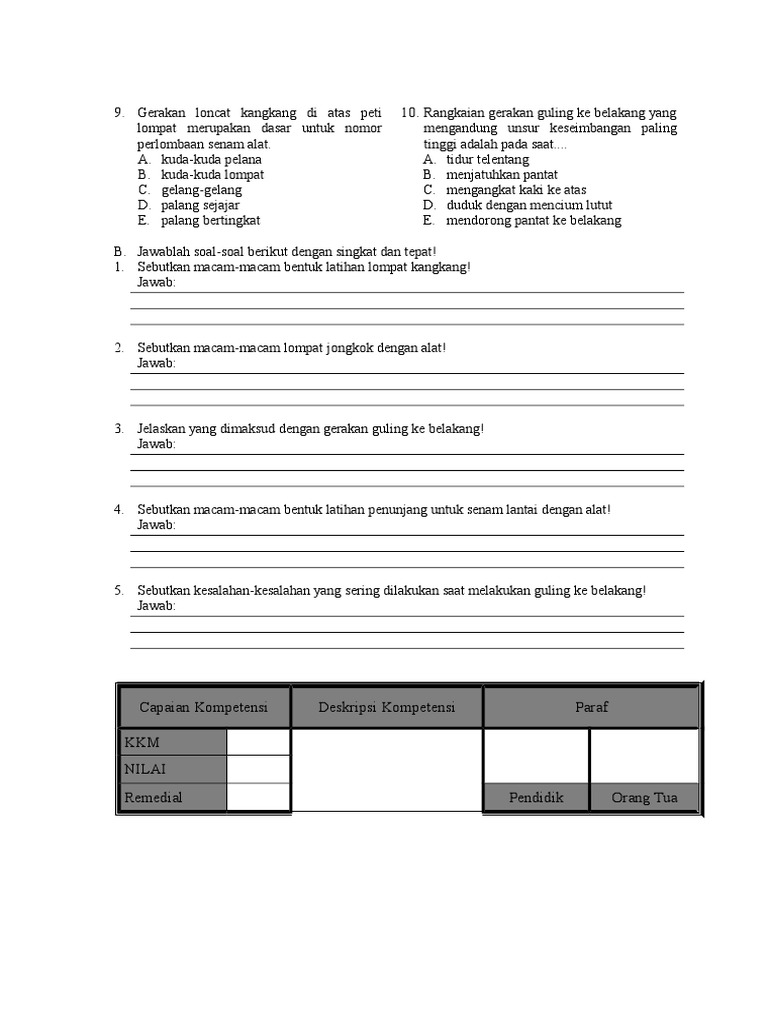 Soal Penjas Materi Senam Lantai Beserta Kunci Jawaban