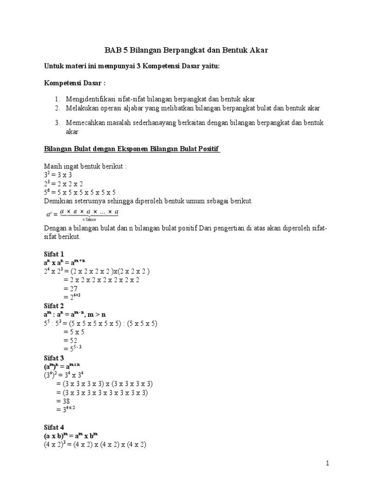 Bab 5 Bilangan Berpangkat Dan Bentuk Akar