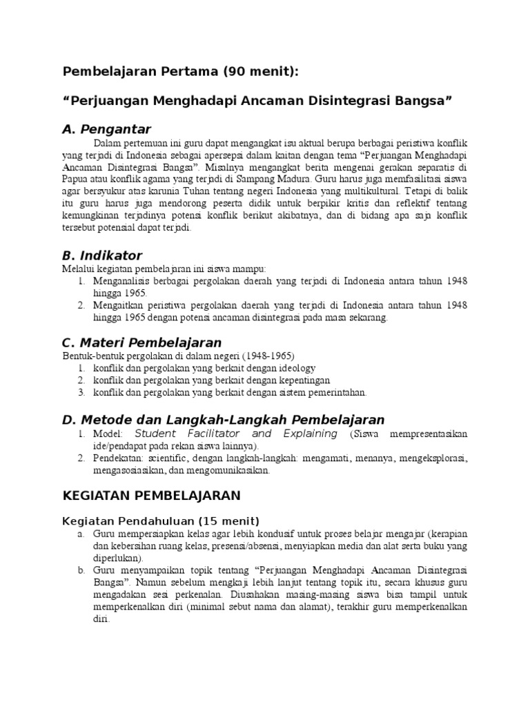 Sejarah Indonesia Kelas Xii Ancaman Disintegrasi