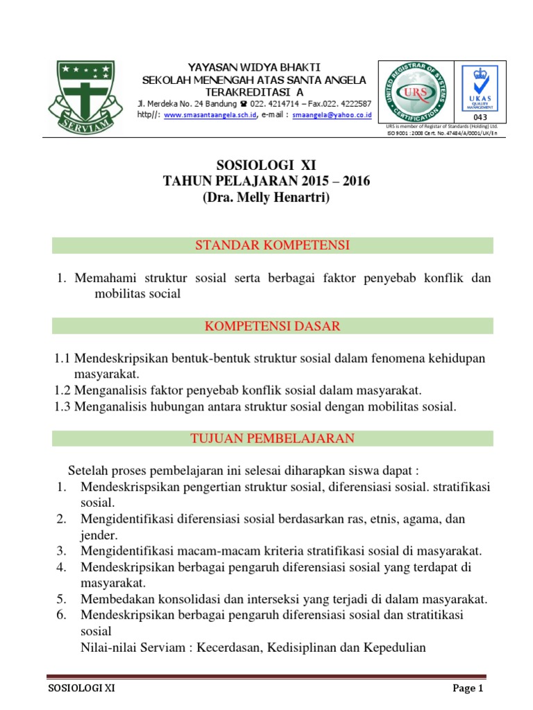 Sosiologi Kelasprogram Xiilmu Sosial Semester