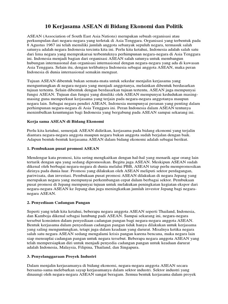 10 Kerjasama Asean Di Bidang Ekonomi Dan Politikdocx