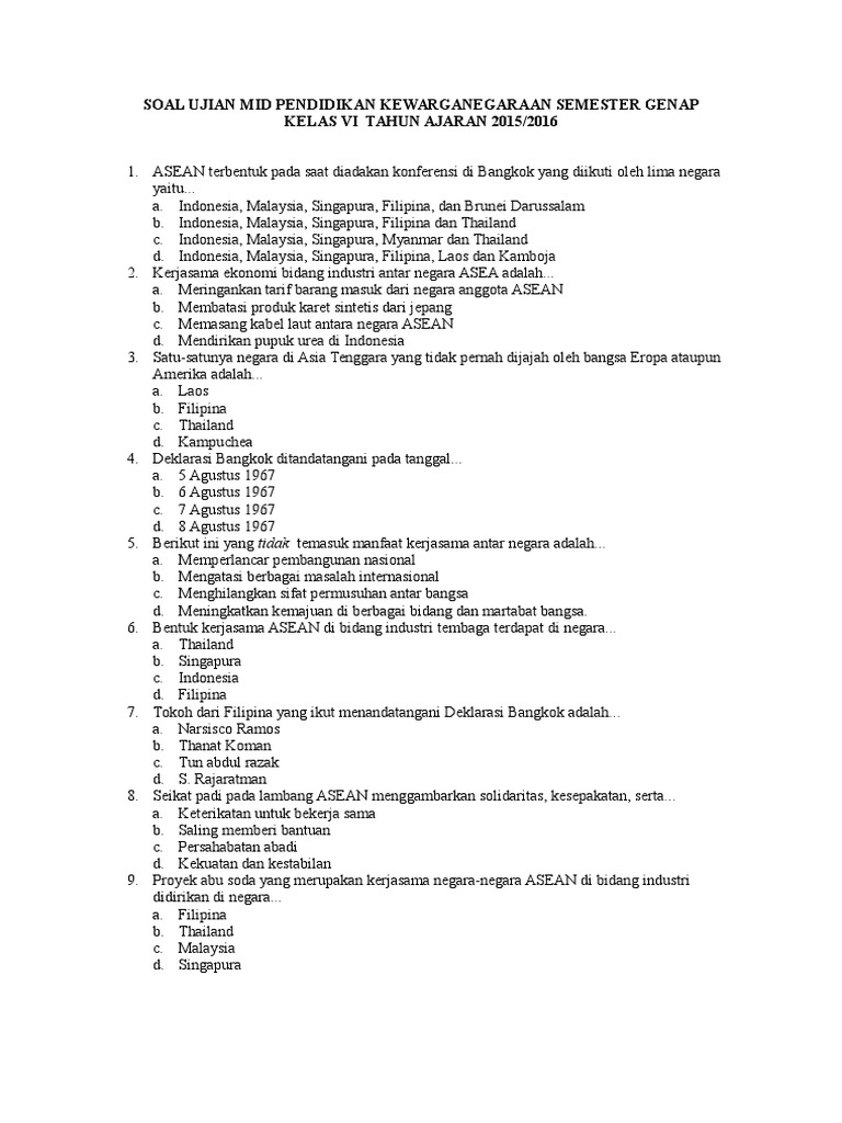 Soal Ujian Mid Pendidikan Kewarganegaraan Semester Genap