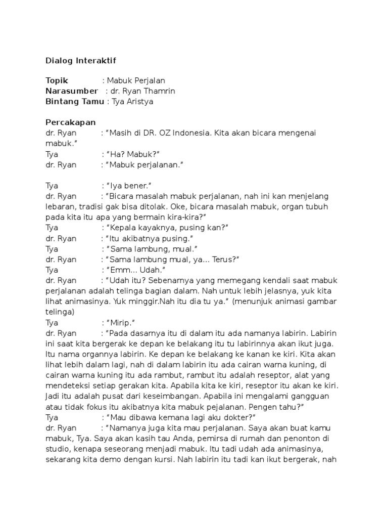 Dialog Interaktif Topik Mabuk Perjalan Narasumber Dr Ryan Thamrin