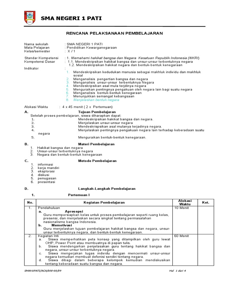 Pdf Silabus Pknsmakelas X Copy Berawal Dari Mimpi Indah