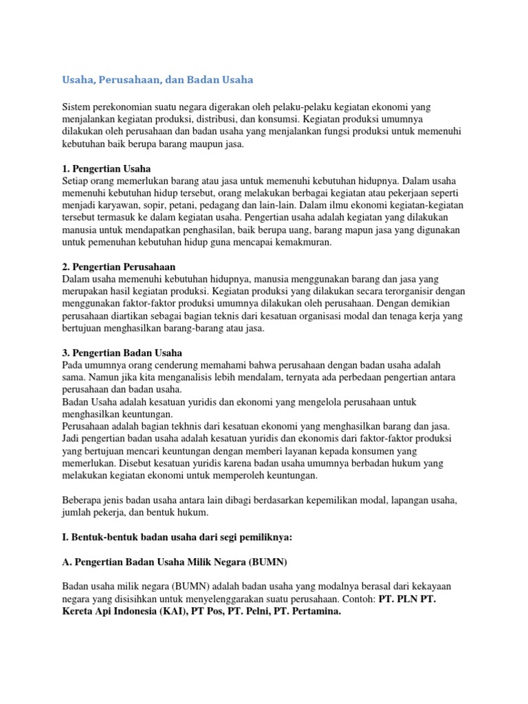 Bentuk Bentuk Badan Usaha Di Indonesia Sarnoid