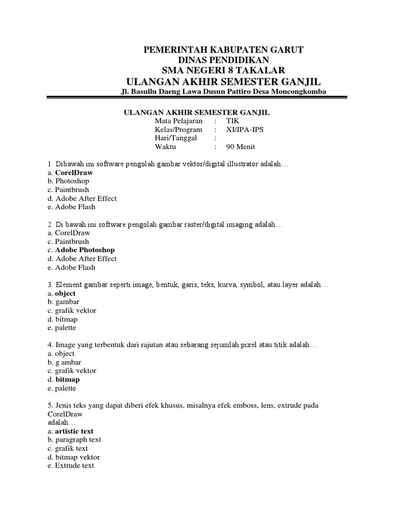 Soal Us Tik Sma Kelas Xii 2016 2017