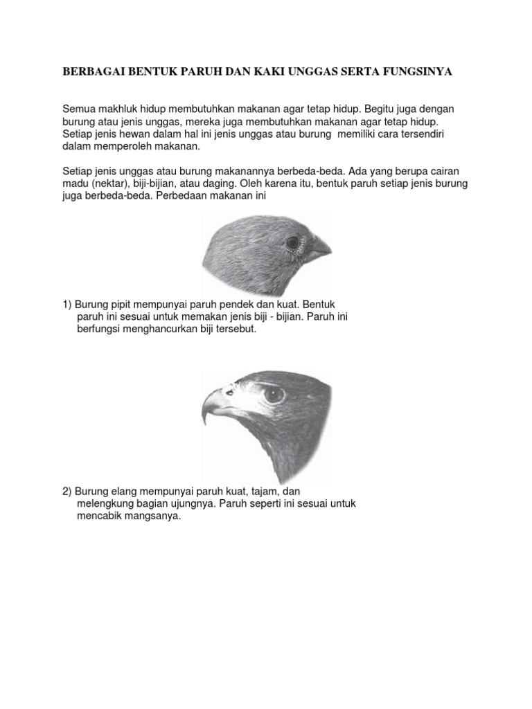 Berbagai Bentuk Paruh Dan Kaki Unggas Serta Fungsinyadocx