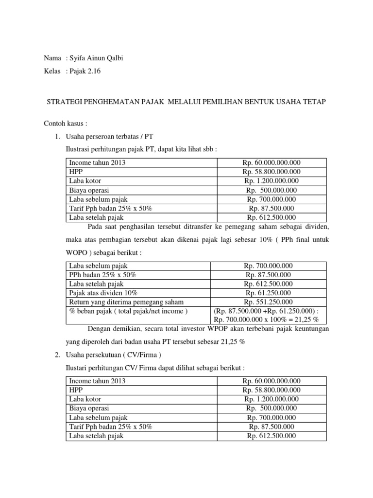 Strategi Penghematan Pajak Melalui Pemilihan Bentuk Usaha Tetapdocx