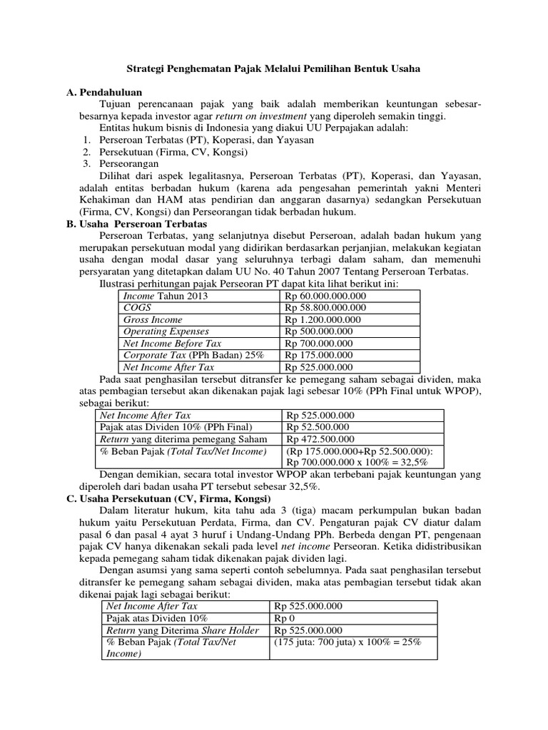 Strategi Penghematan Pajak Melalui Pemilihan Bentuk Usaha