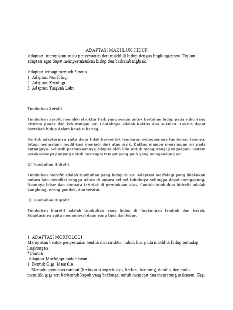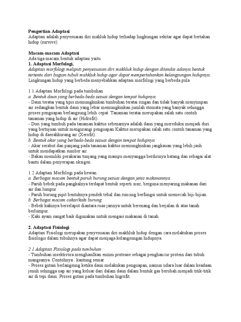 Adaptasi Makhluk Hidup Pdf