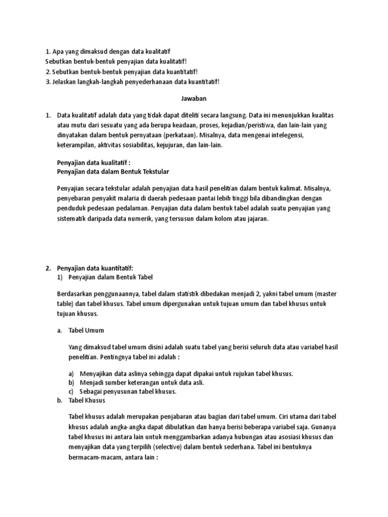 Berikut detail informasi tentang Sebutkan Bentuk Bentuk Penyajian Data Kuantitatif.