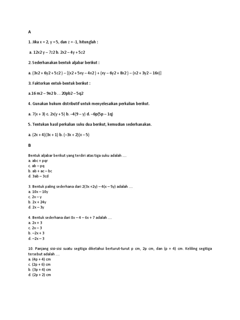 Soal Ulangan Alajabar Kelas 8 Kunci Jawaban Pdf Document