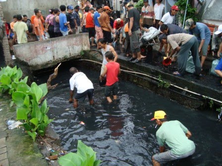 Kerjabakti membuat selokan pinggir jalan. Gotong royong merupakan kepribadian bangsa dan merupakan budaya yang telah berakar kuat dalam kehidupan masyarakat.