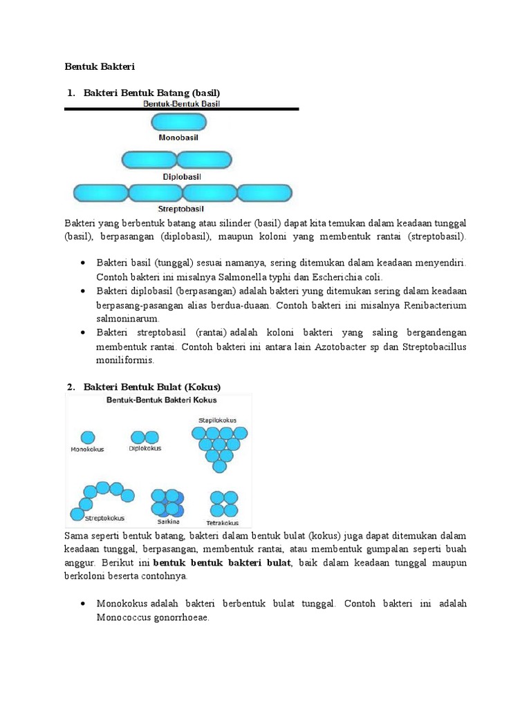 Bentuk Bentuk Bakteri Gambar Dan Contoh Contohnya