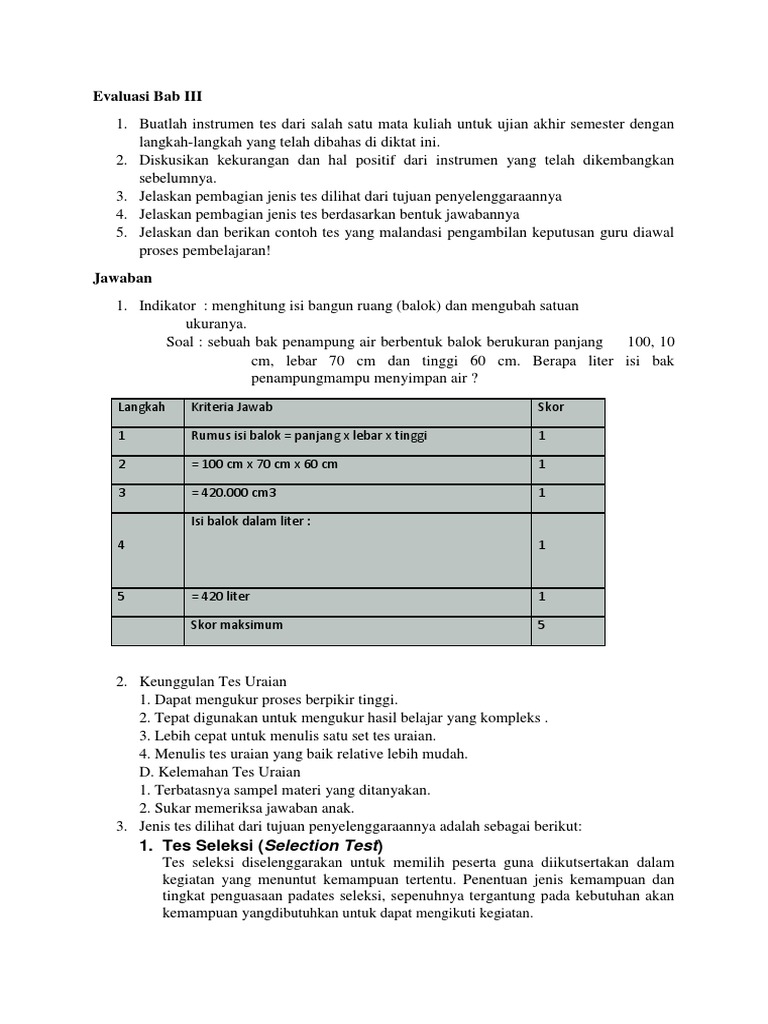 Soal Dan Jawaban Evaluasi Pembelajaran