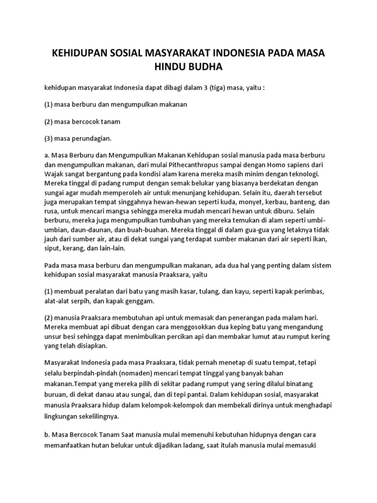 Kehidupan Sosial Masyarakat Indonesia Masa Praaksara Hindu Budha