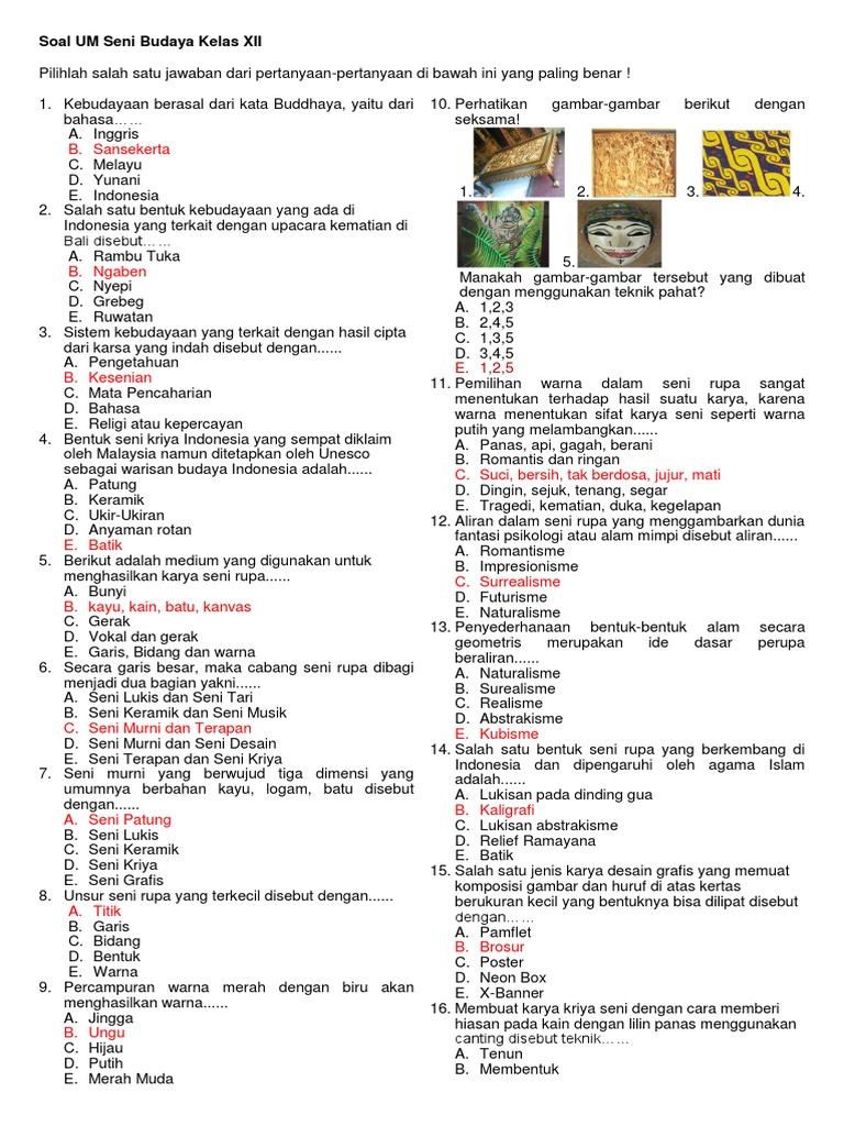 Seni Budaya Paramitha Soal Latihan Uas Senibudaya Kelas Xii