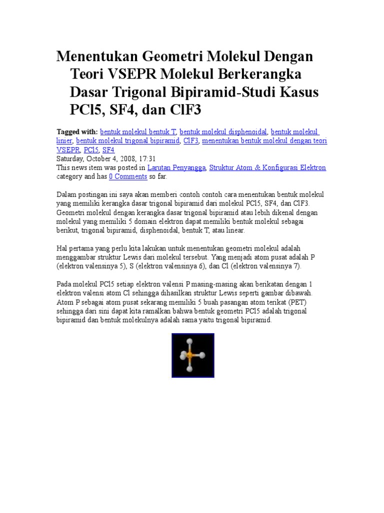 Soal Dan Pembahasan Bentuk Geometri Molekul Teori Domain Elektron