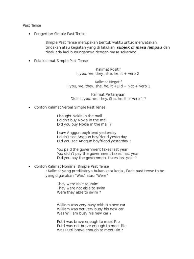 Simple Past Tense Lengkap Dengan Contoh Verbal Nominal Yangyang17